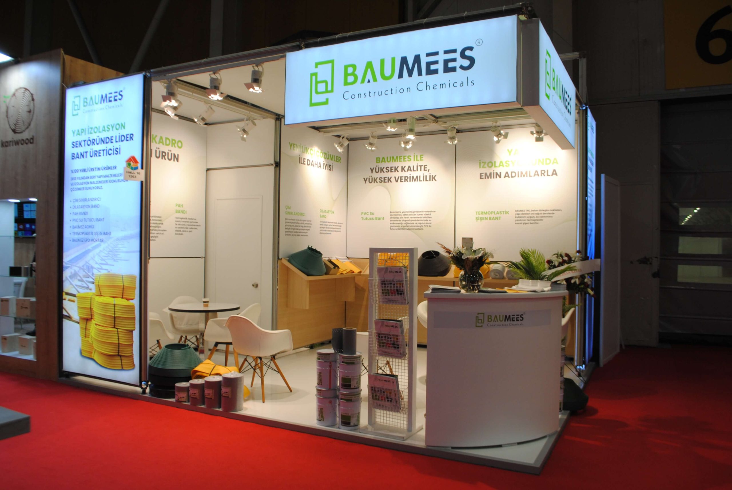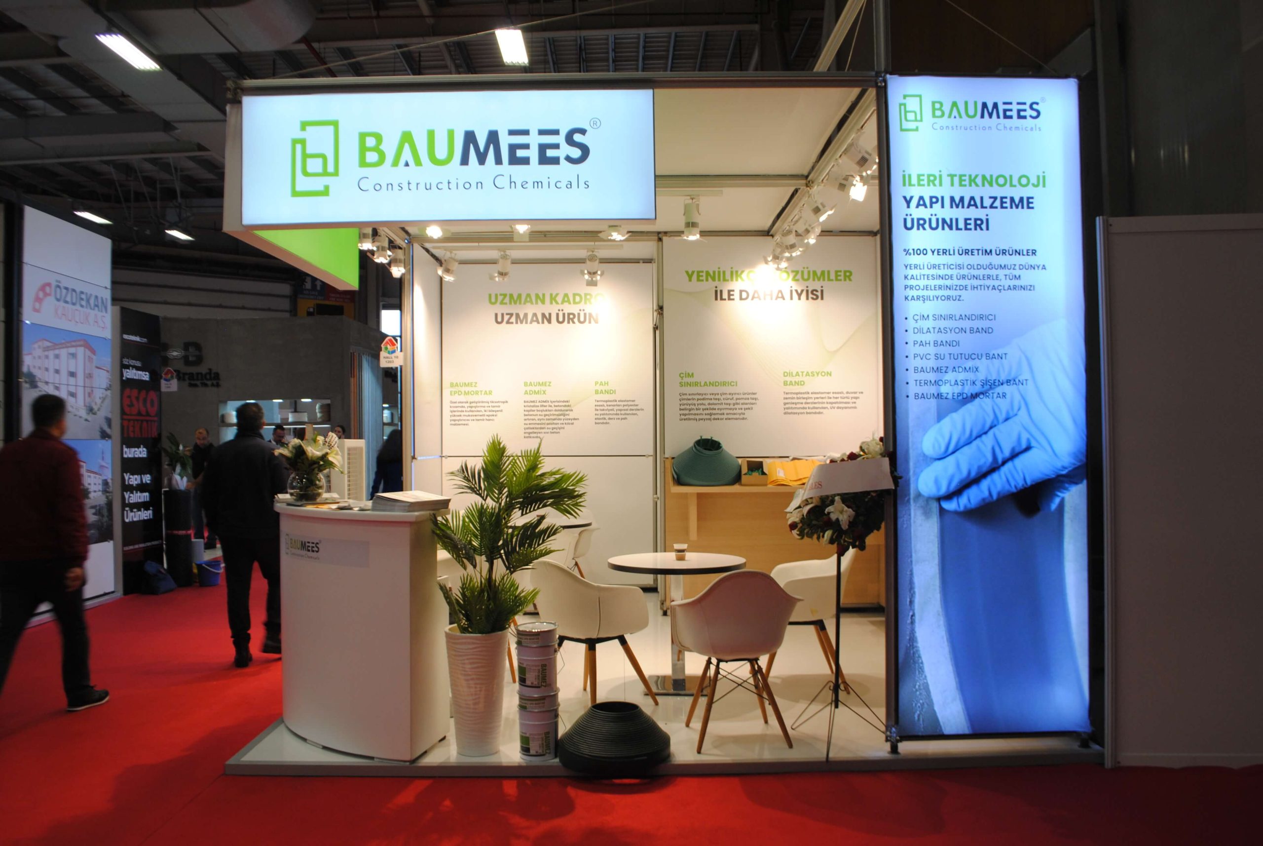 BAUMEES Yapı Kimyasalları için tasarladığımız bu standın amacı, markanın temel değerlerini etkili bir şekilde ileten profesyonel ve son derece bilgilendirici bir platform yaratmaktı.