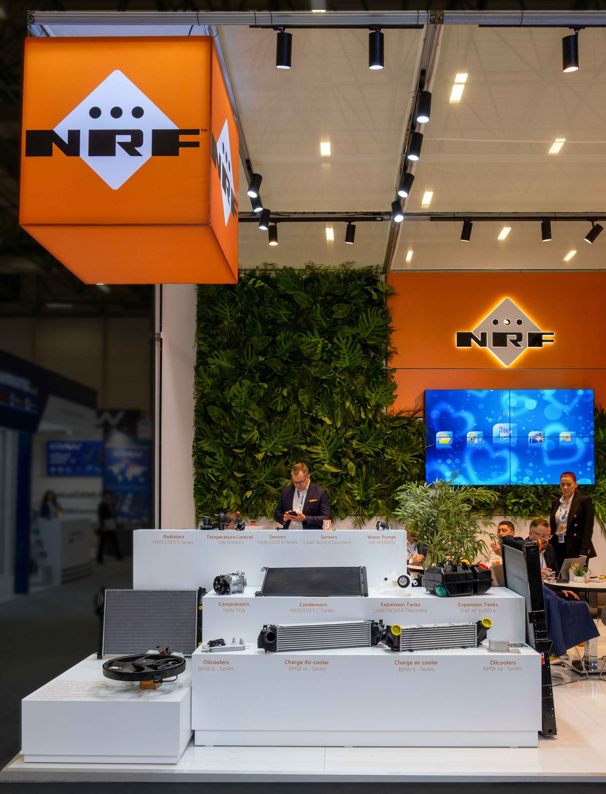 Tasarımın temel unsurlarından biri, ürünlerin teknik yapısıyla çarpıcı bir kontrast oluşturan, modern bir görünüm ve sürdürülebilirliğe bir selam niteliğindeki yemyeşil bir duvarın entegrasyonuydu.