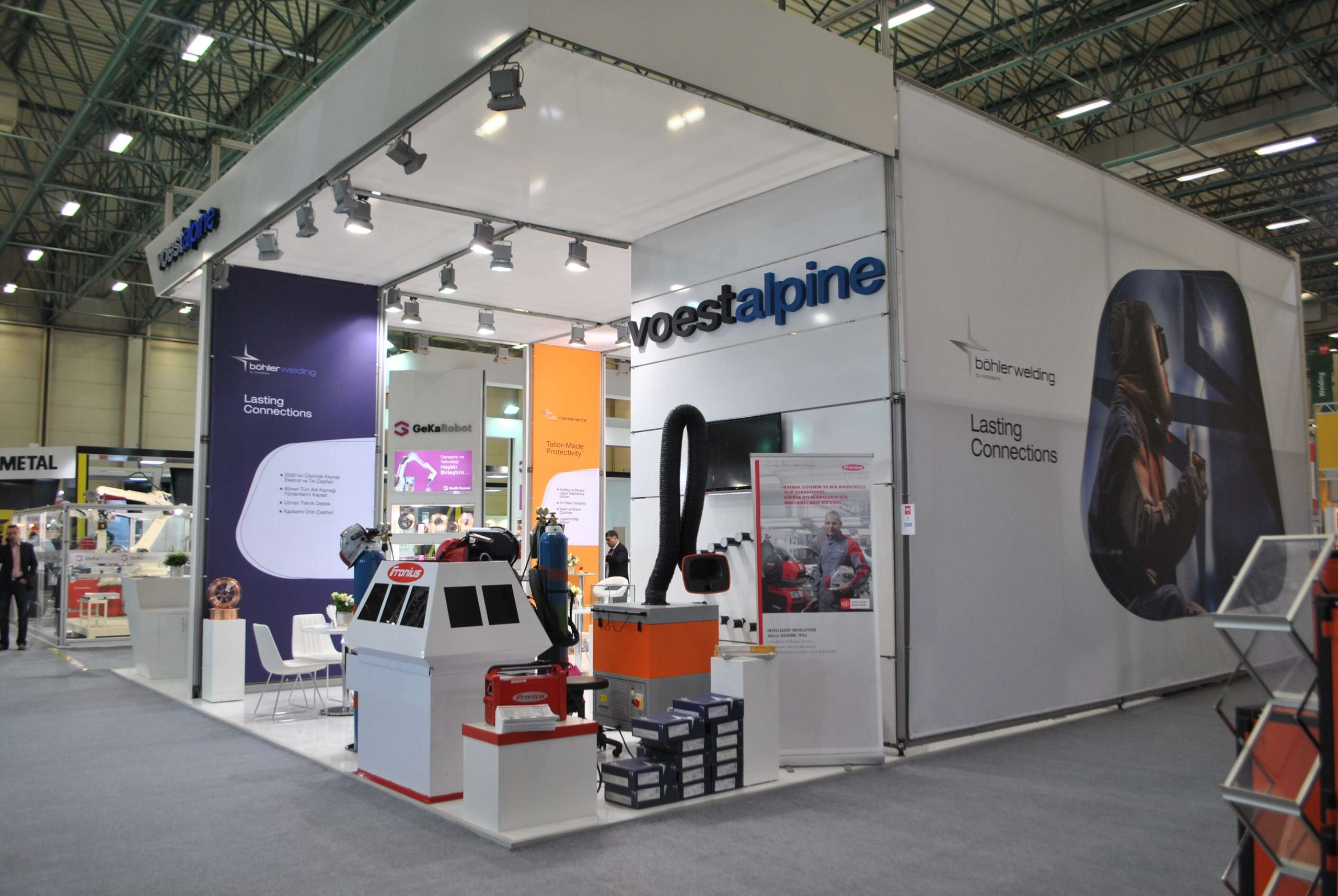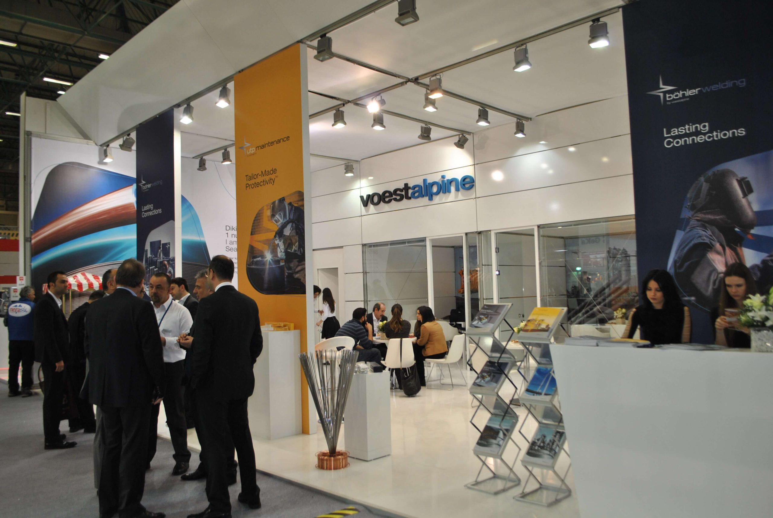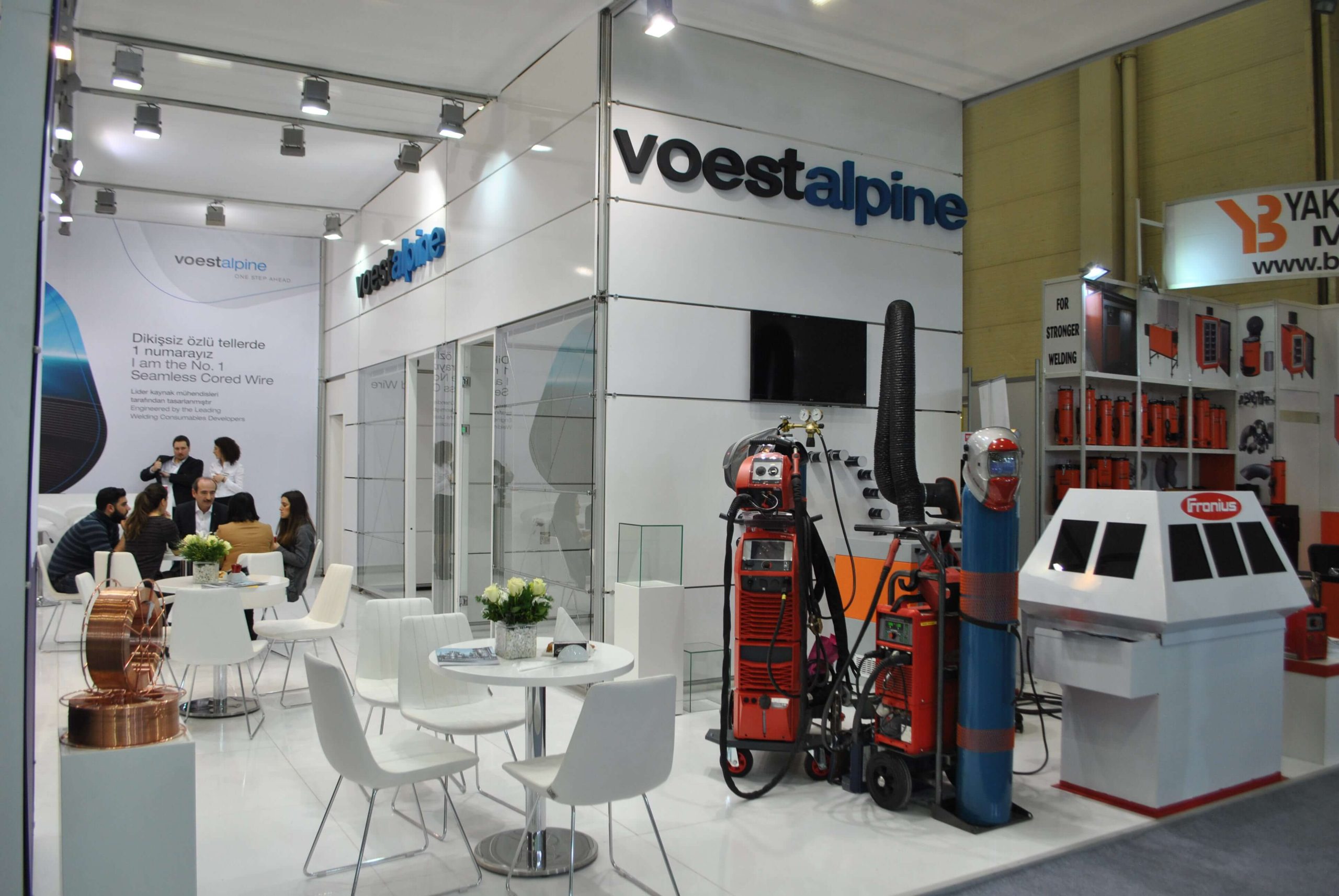 Bu fuar standı, Voestalpine markasının profesyonel ve kurumsal kimliğini yansıtan modern bir tasarıma sahiptir.